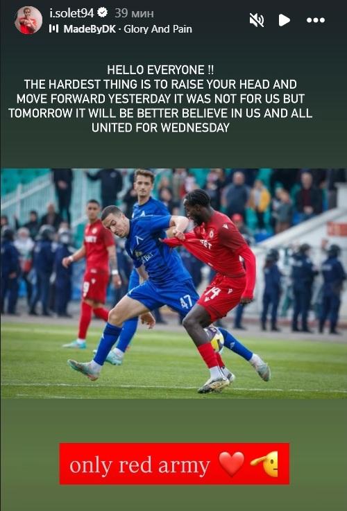 Най-трудното нещо е да вдигнеш глава и да продължиш напред. Вчера не беше нашият ден, но утре ще бъде по-добър. Вярвайте в нас и нека всички бъдем обединени за сряда”, написа Исак Соле на стори в Инстаграм.