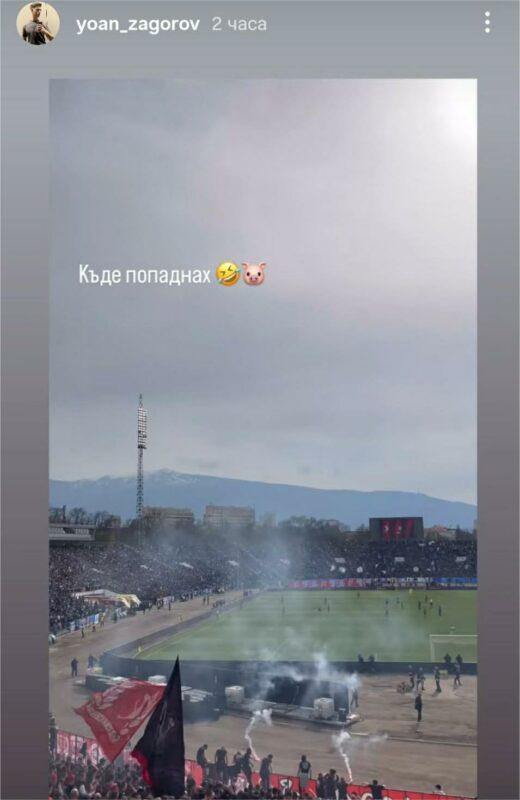 Роденият през 2005 г. Загоров пусна стори в Instagram, на което се вижда, че се намира в сърцето на Сектор Г, където са най-върлите фенове на ЦСКА.