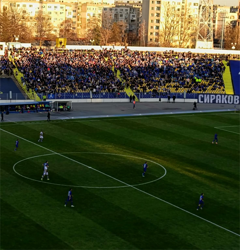 „Сините“ наложиха натиск и Мустафа Сангаре успя да обстрелва вратата на Любенов с глава. Изстрелът на малиеца мина до лявата греда на юношата на Левски.