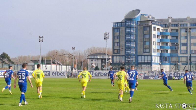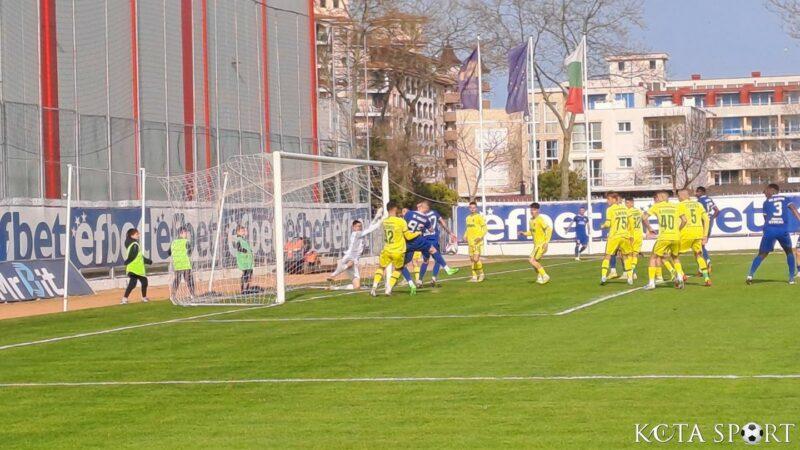 В 80-ата минута и удар с глава на Димитър Костадинов бе уловен от Златомир Стоименов.